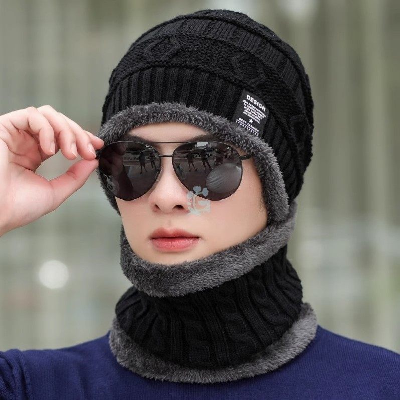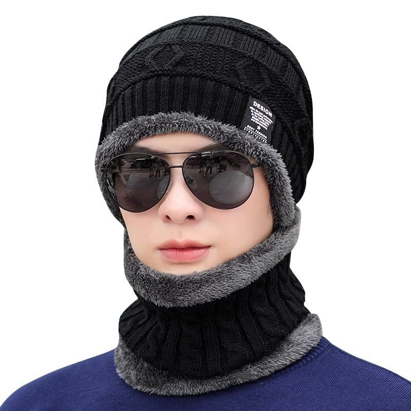 帽子男士冬季防寒保暖防风帽冬天骑车护耳围脖加绒加厚针织毛线帽