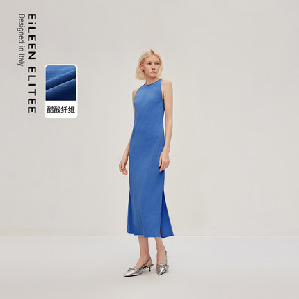 朗姿欧洲EiLEEN ELITEE醋酸法式长裙2024夏季新款连衣裙女背心裙