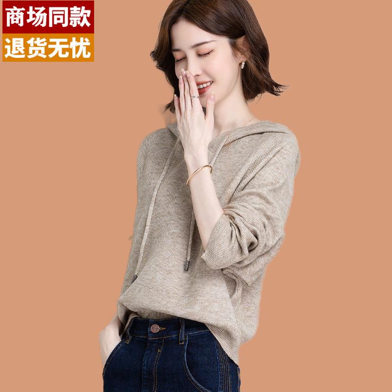 连帽针织衫女士毛衣宽松外穿带帽卫衣高腰短款羊毛蝙蝠衫外套上衣