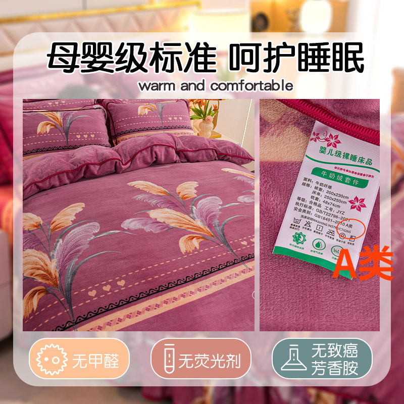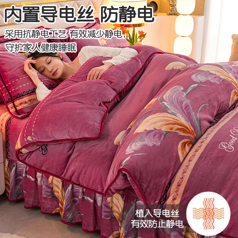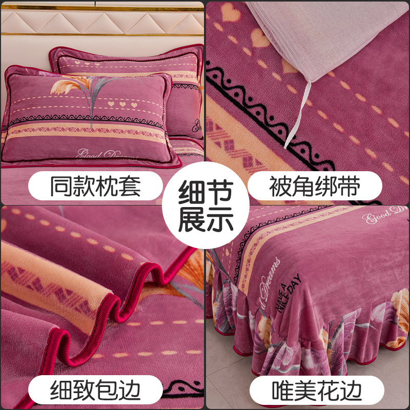 冬天加绒牛奶绒四件套保暖新款冬季加厚法兰珊瑚绒被套床裙妈妈款