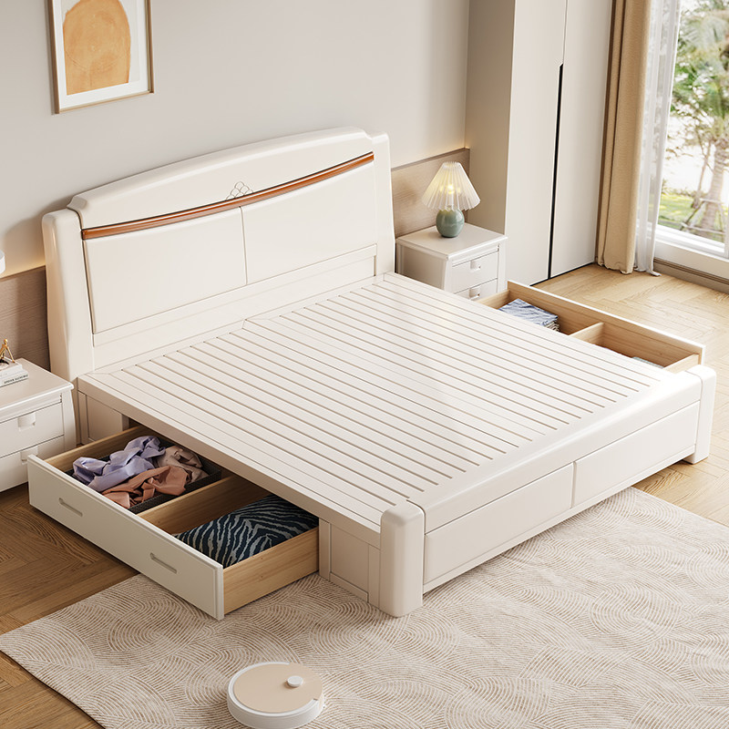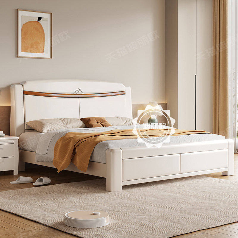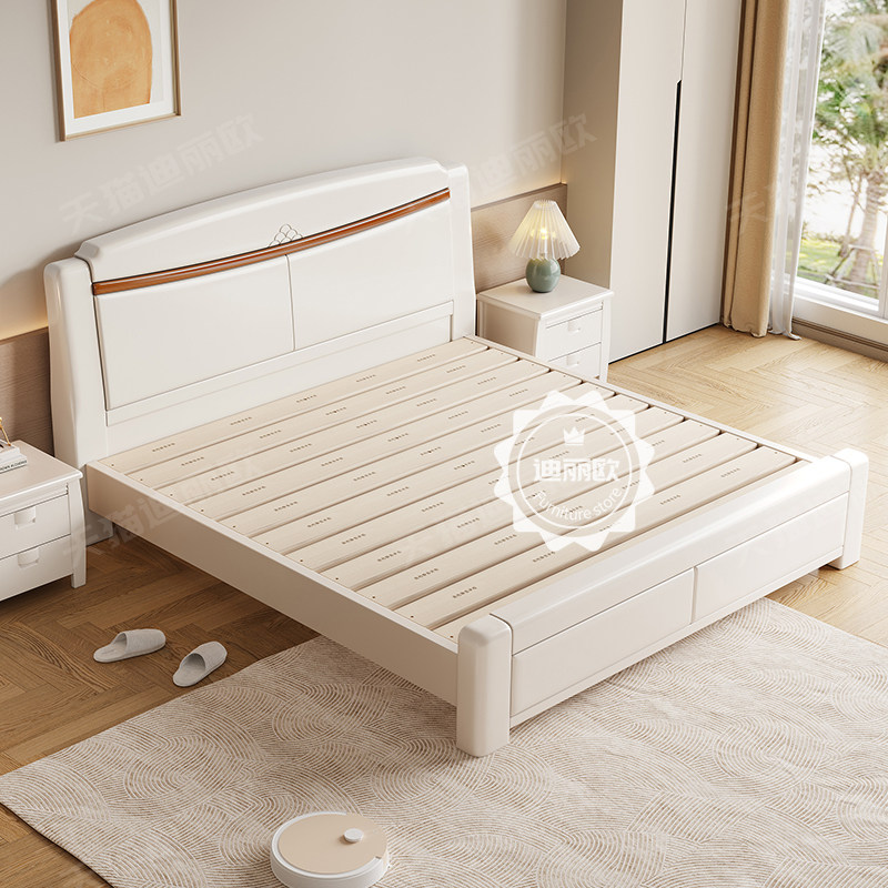 全友家居白色实木双人床1.8米 中式橡木储物婚床 经济型双人床组