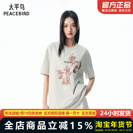 【商场同款】凉感抗菌太平鸟蝴蝶结纹样25秋季新短袖T恤A1CNF3P38