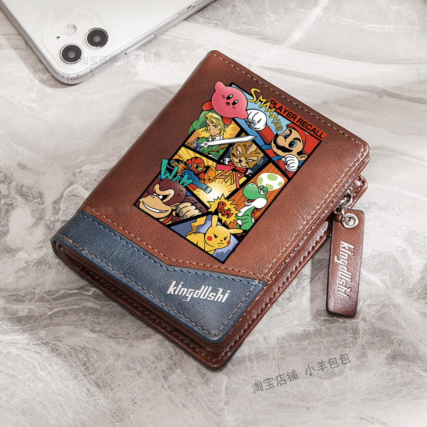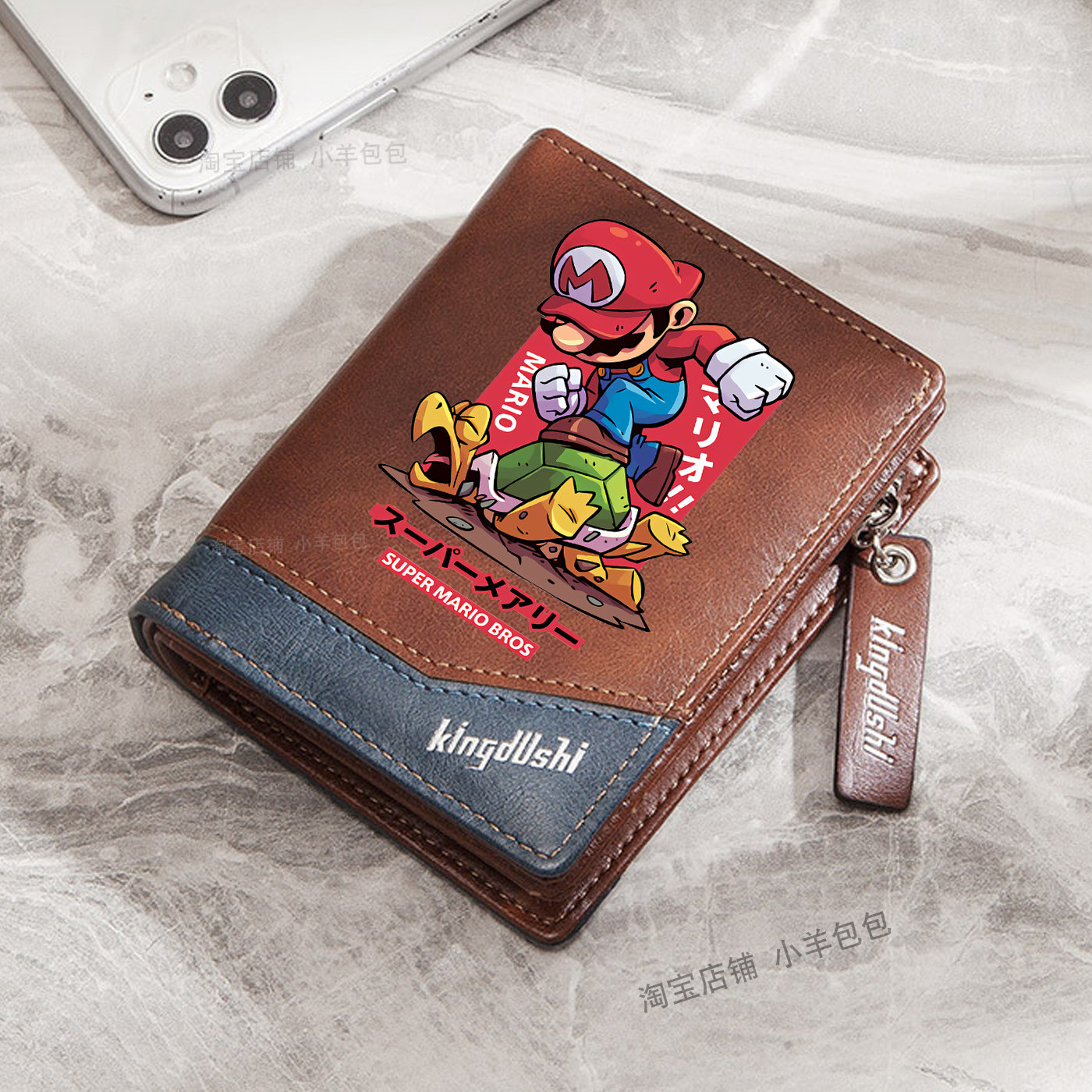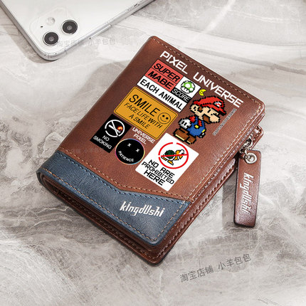 马里奥钱包男款游戏动漫卡通PU皮拉链搭扣大容量个性潮学生零钱包