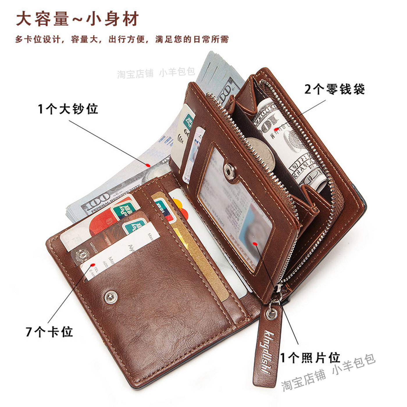 马里奥钱包男款皮质拉链搭扣