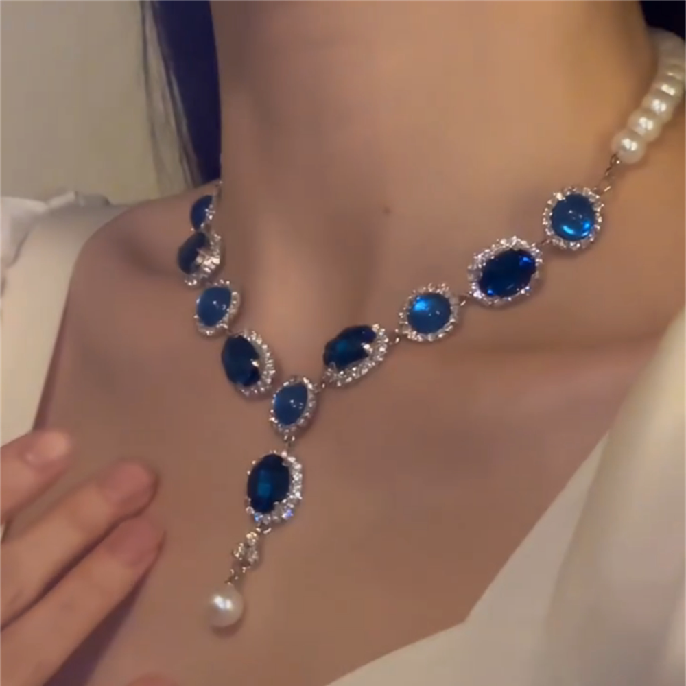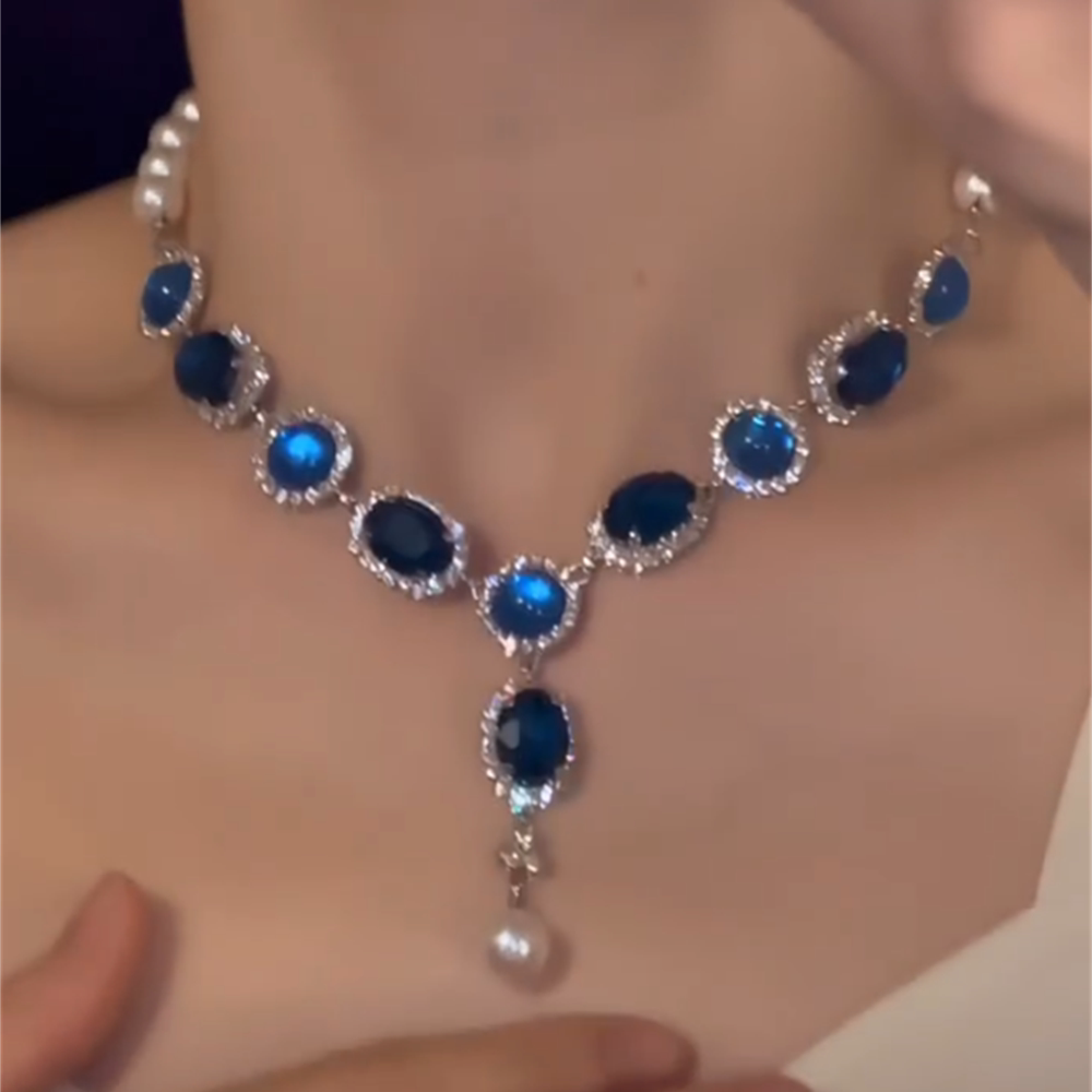 zoozmomo蓝色水钻项链千金风晚宴礼服锁骨链耳环轻奢精致镶钻颈链