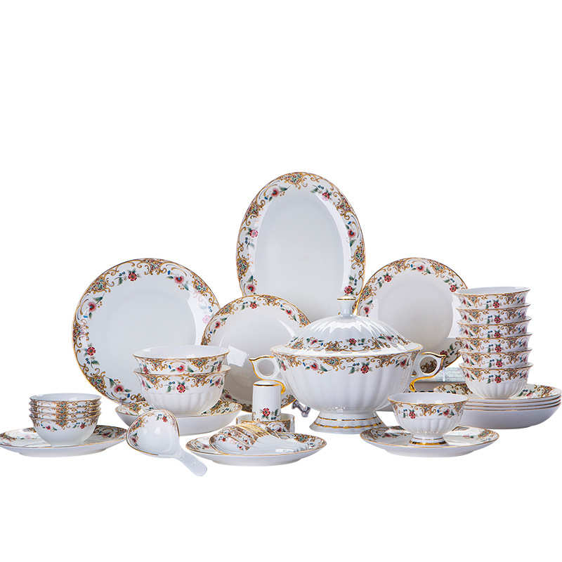 碗碟套装景德镇金边陶瓷餐具家用简约碗碟盘描金饭碗盘子