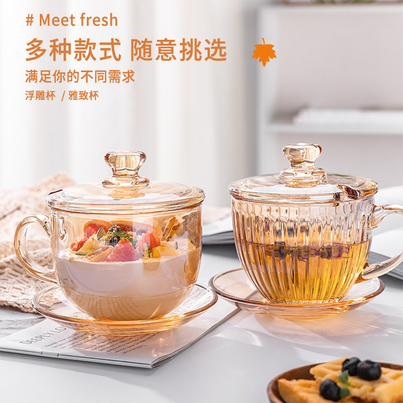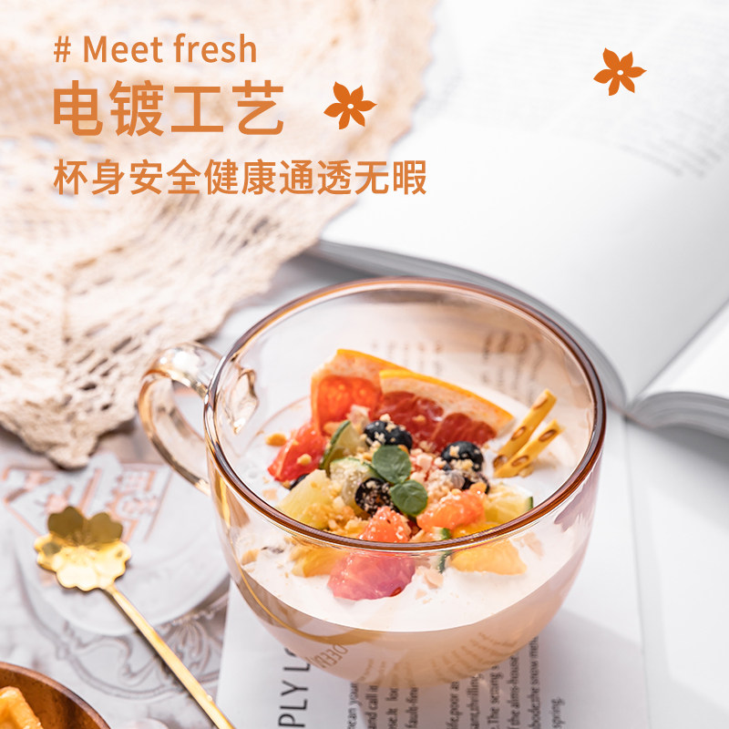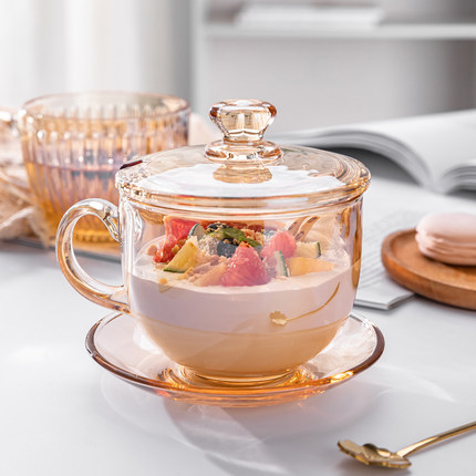 朗旭牛奶杯琥珀色早餐杯高颜值大容量泡花茶燕麦玻璃杯耐热带盖勺