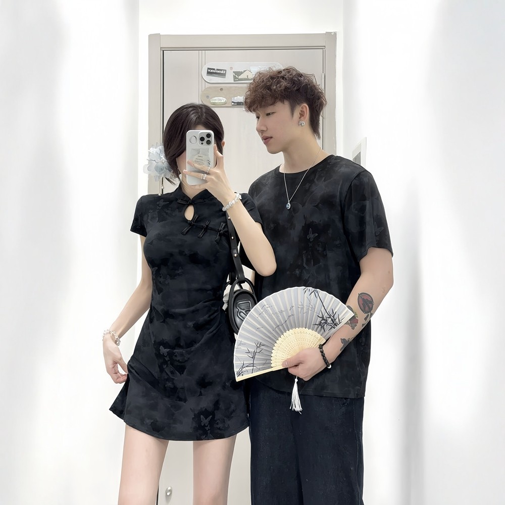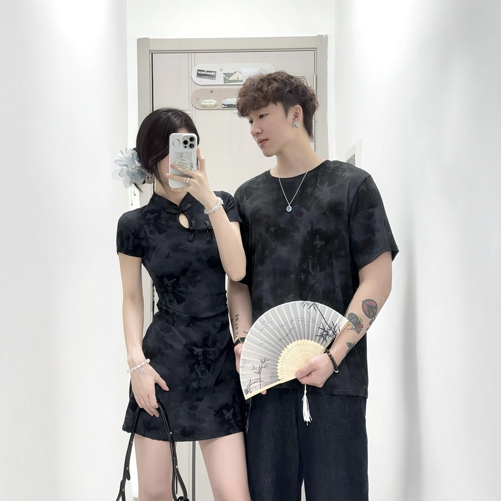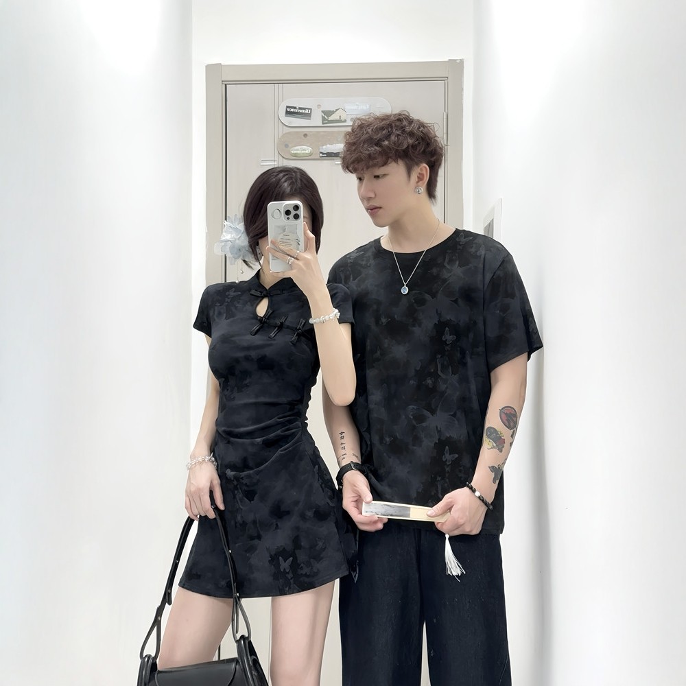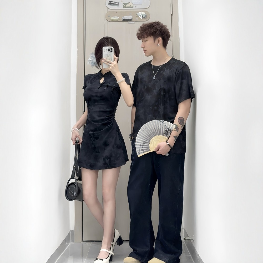 情侣装夏季小众设计感一裙一衣2025新款法式复古旗袍连衣裙显瘦潮