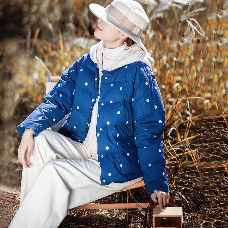 圆领直筒羽绒服女短款单排扣外套