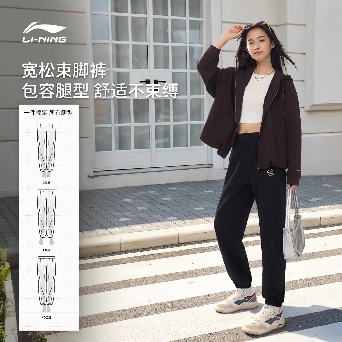 李宁运动裤女士春季跑步女裤宽松休闲裤子针织卫裤束脚运动长裤女