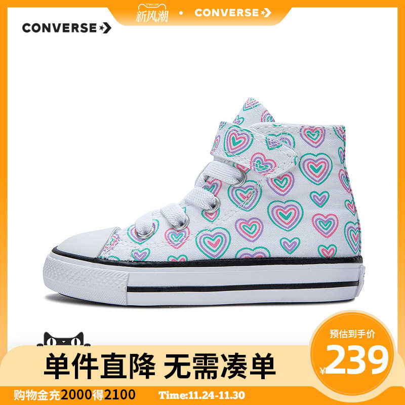 Converse匡威儿童女童帆布鞋2025冬新款高帮魔术贴款童鞋A08379C