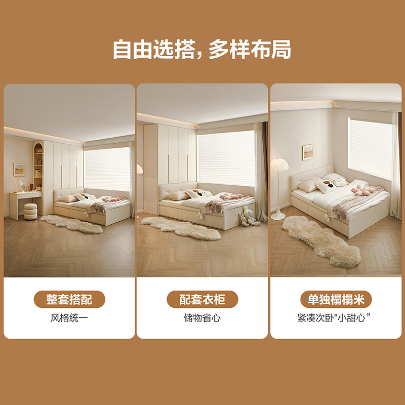 全友家居奶油风榻榻米单人床次卧小户型落地双人储物板式床
