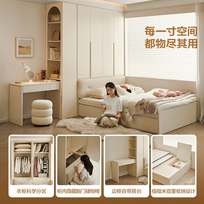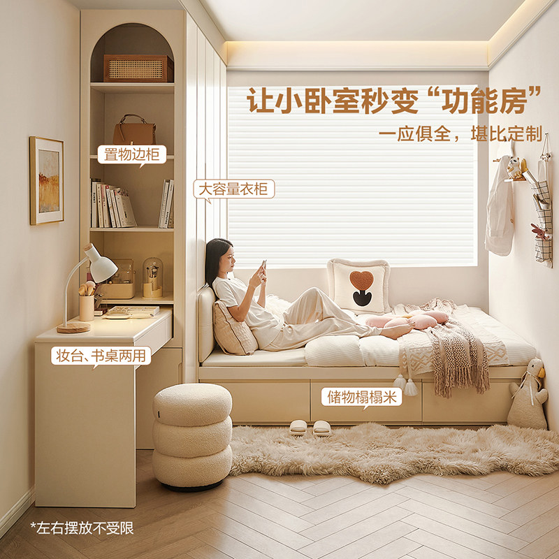 全友家居奶油风榻榻米床衣柜一体