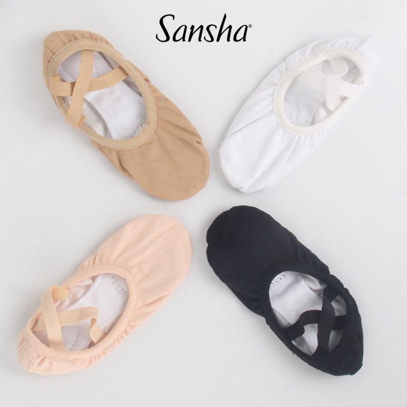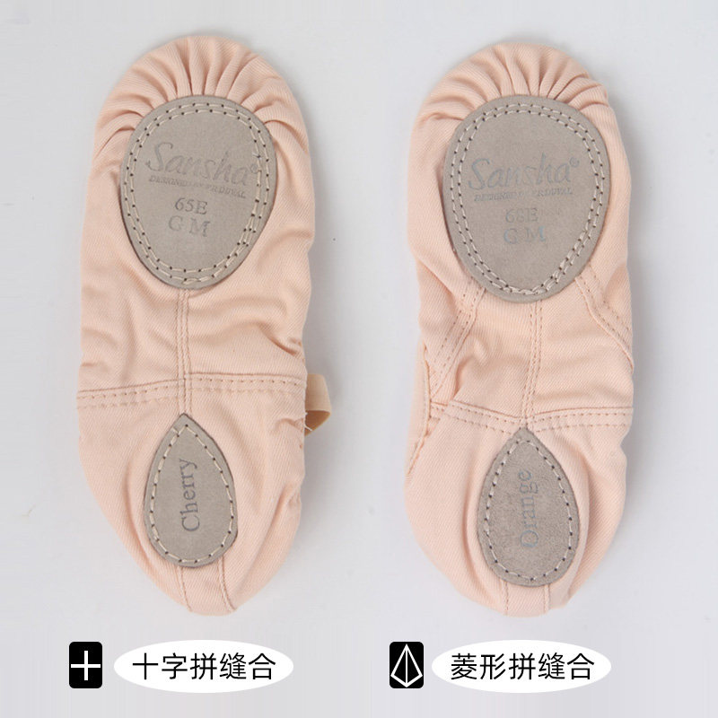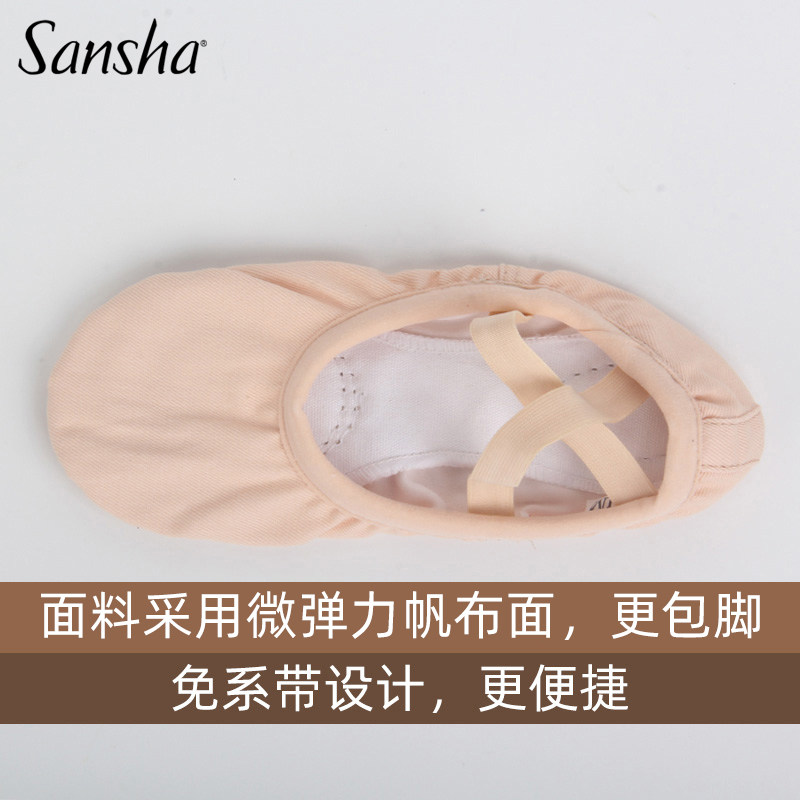 sansha法国三沙舞蹈鞋软鞋练功鞋弹力帆布面儿童免系带芭蕾猫爪鞋