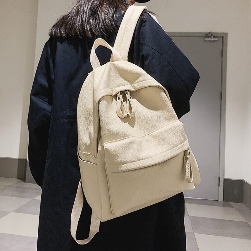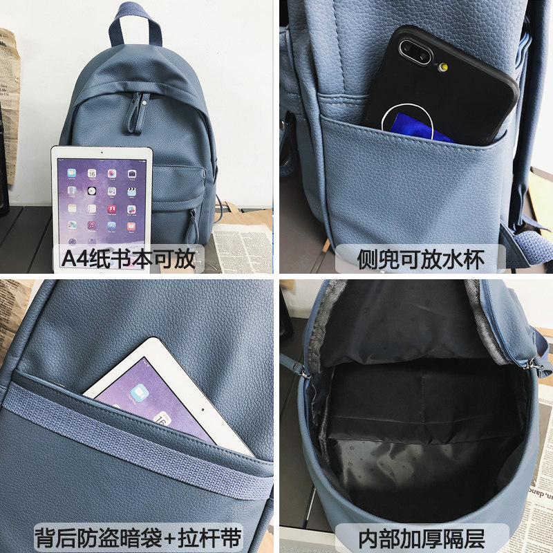 新品防水书包女韩版新款百搭时尚潮bf风皮背包女黑色双肩包男旅行