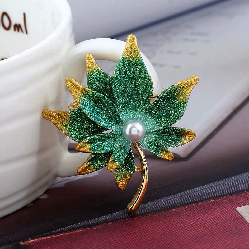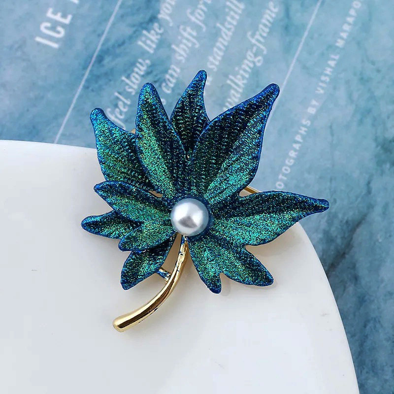 窗帘装饰配件小饰品帘头点缀珍珠合金双层枫叶别针金色树叶胸针