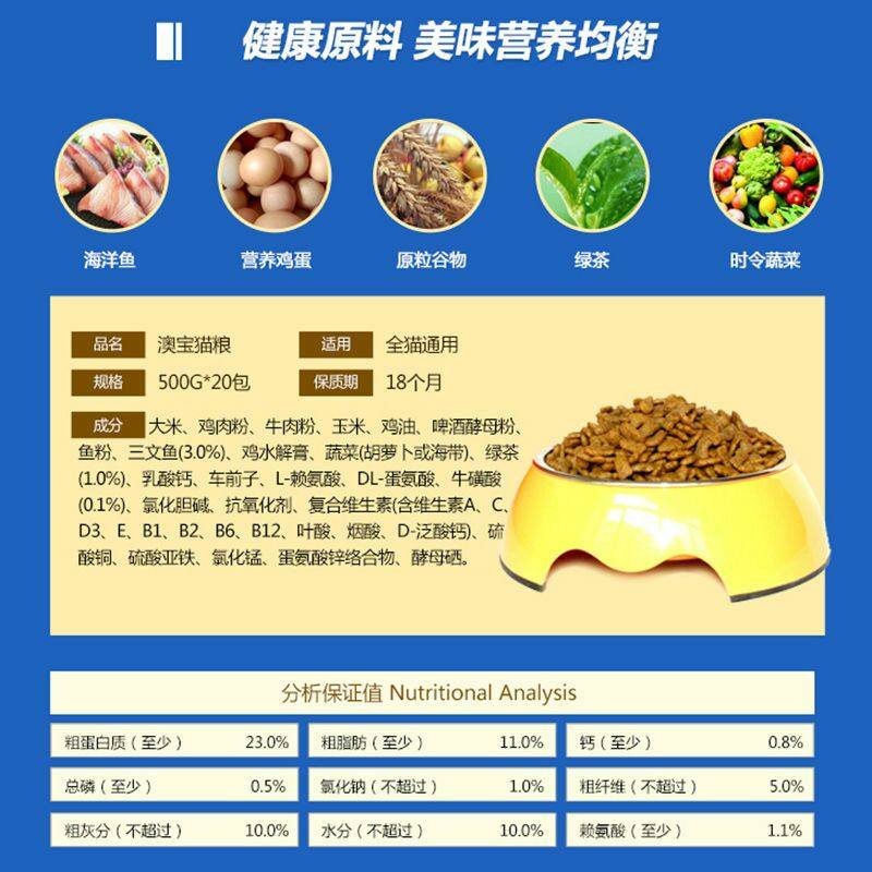 雷米高澳宝宠物营养猫粮独立包装500克20小包海洋鱼猫粮10kg包邮