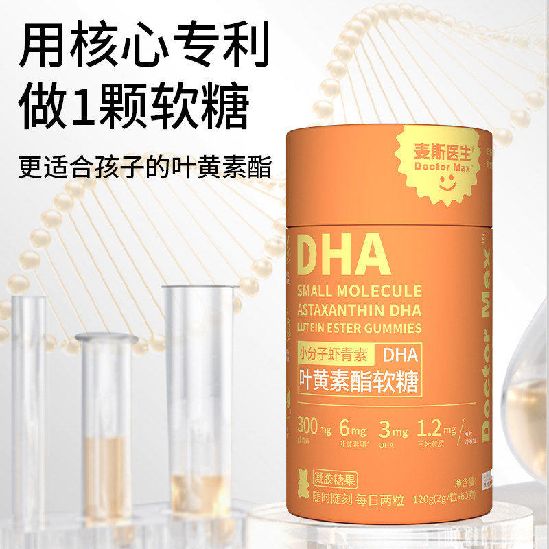 麦斯医生小分子虾青素DHA叶黄素酯软糖120g/盒0小包装玉米年货节