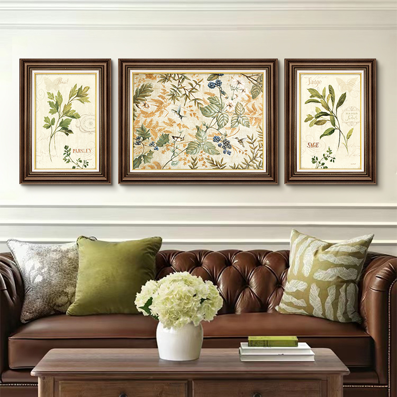 美式客厅装饰画沙发背景墙挂画欧式三联画法式复古油画高级感壁画
