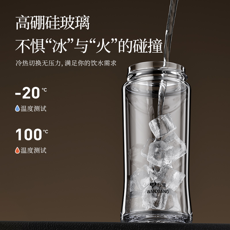 万象玻璃杯单层加厚男士大容量便携泡茶个人专用新款车载水杯子女