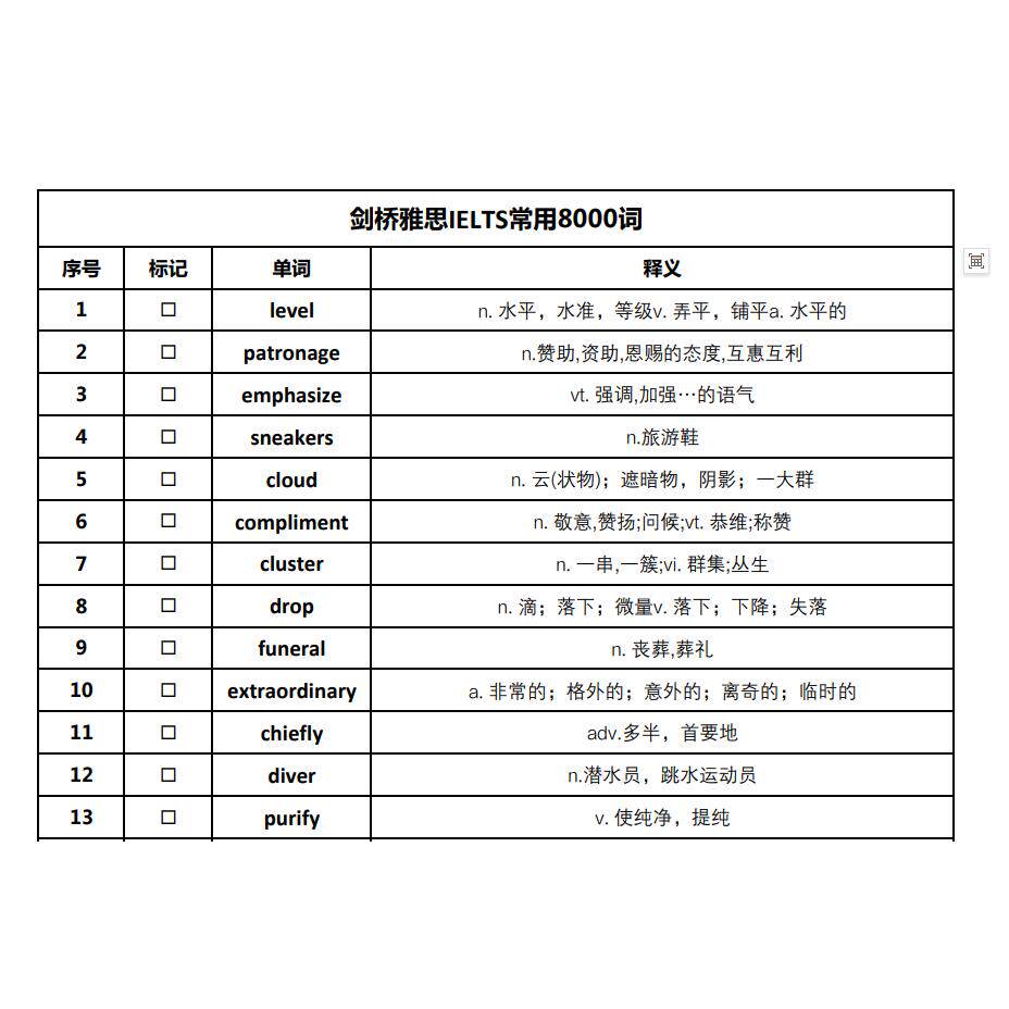 剑桥雅思常用8000词雅思考试英语词汇完整版默写本背诵本背词神器