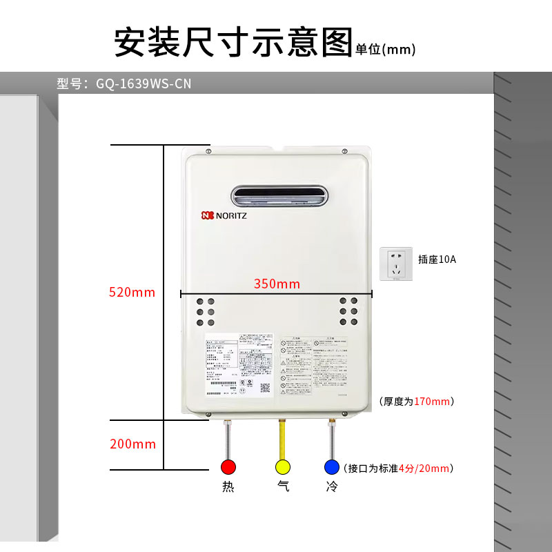 NORITZ/能率 GQ-1640W/16D2AW室外16升防冻防雨天然气燃气热水器