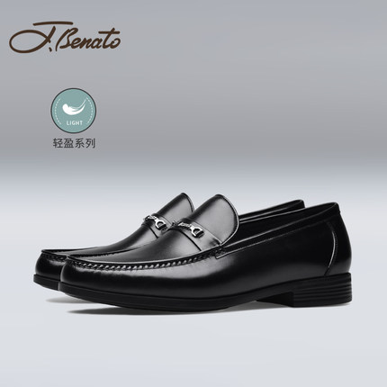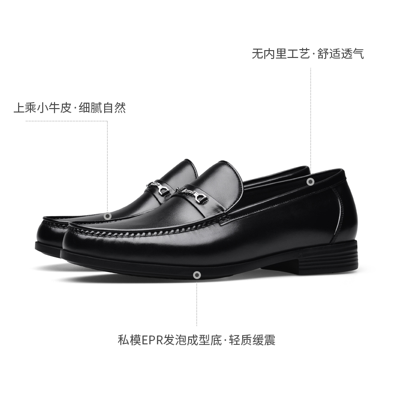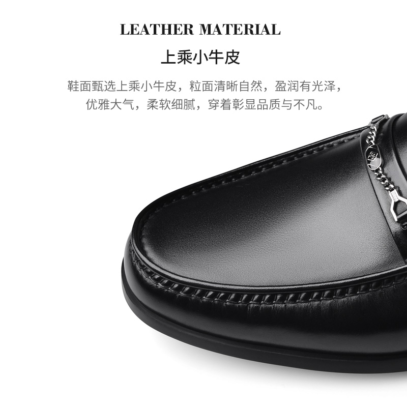 宾度男鞋秋冬季男士商务正装皮鞋真皮套脚爸爸鞋舒适乐福鞋办公鞋