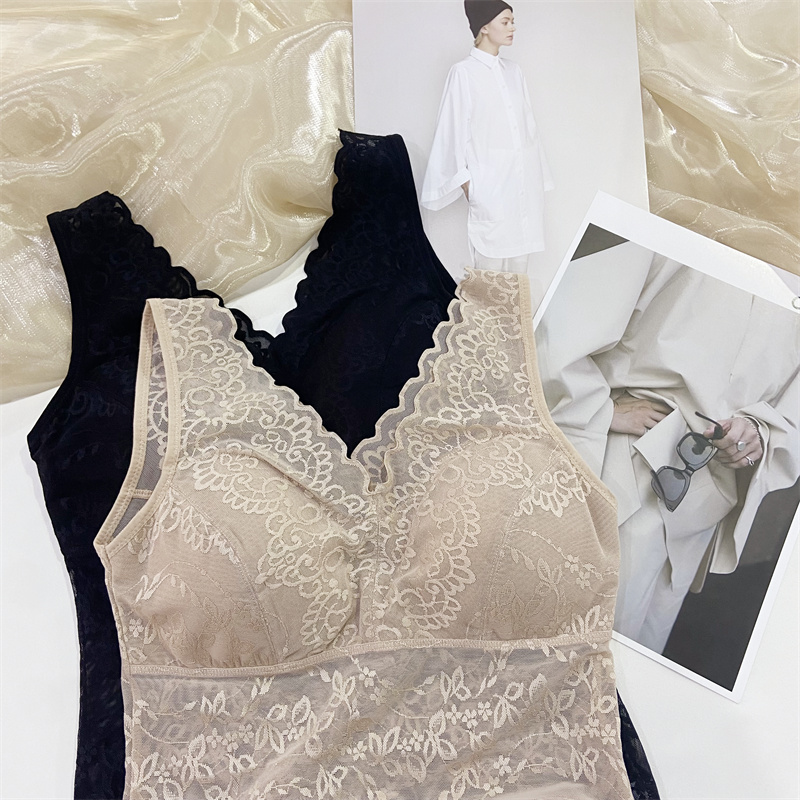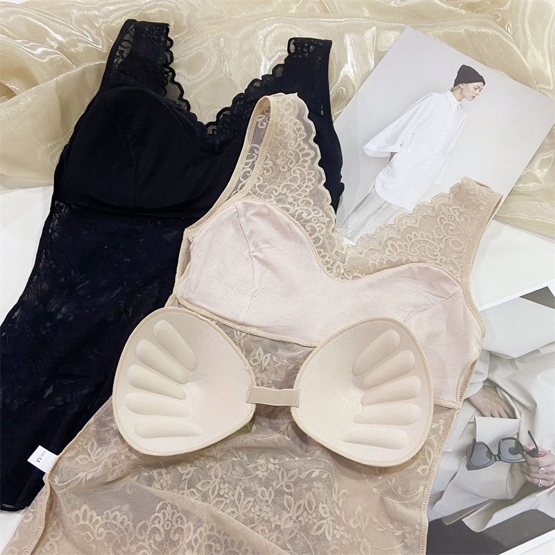春夏薄透气塑身蕾丝打底吊带背心微压轻塑型文胸一体女内衣带胸垫