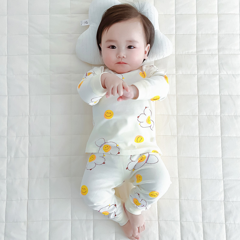 班纳之家婴儿纯棉无骨秋衣二件套装男女宝宝棉毛衫睡衣分体套装秋