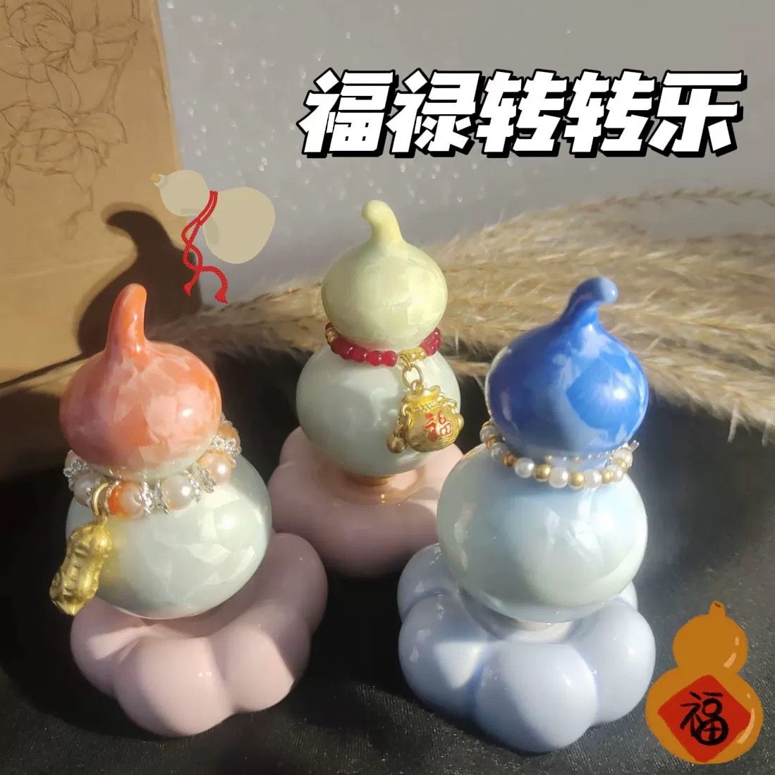 景德镇陶瓷葫芦转转摆件卡通装饰品桌面网红摆设创意礼物转转乐