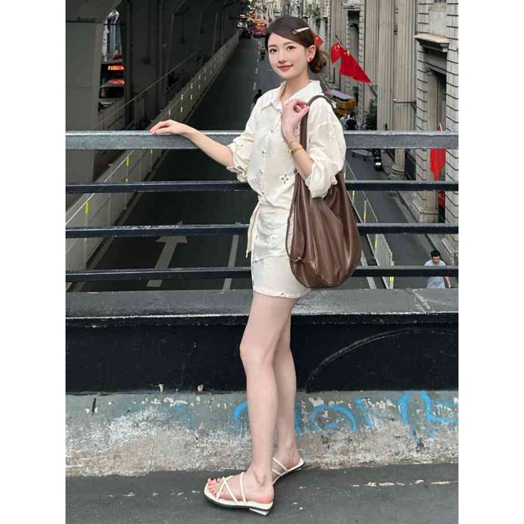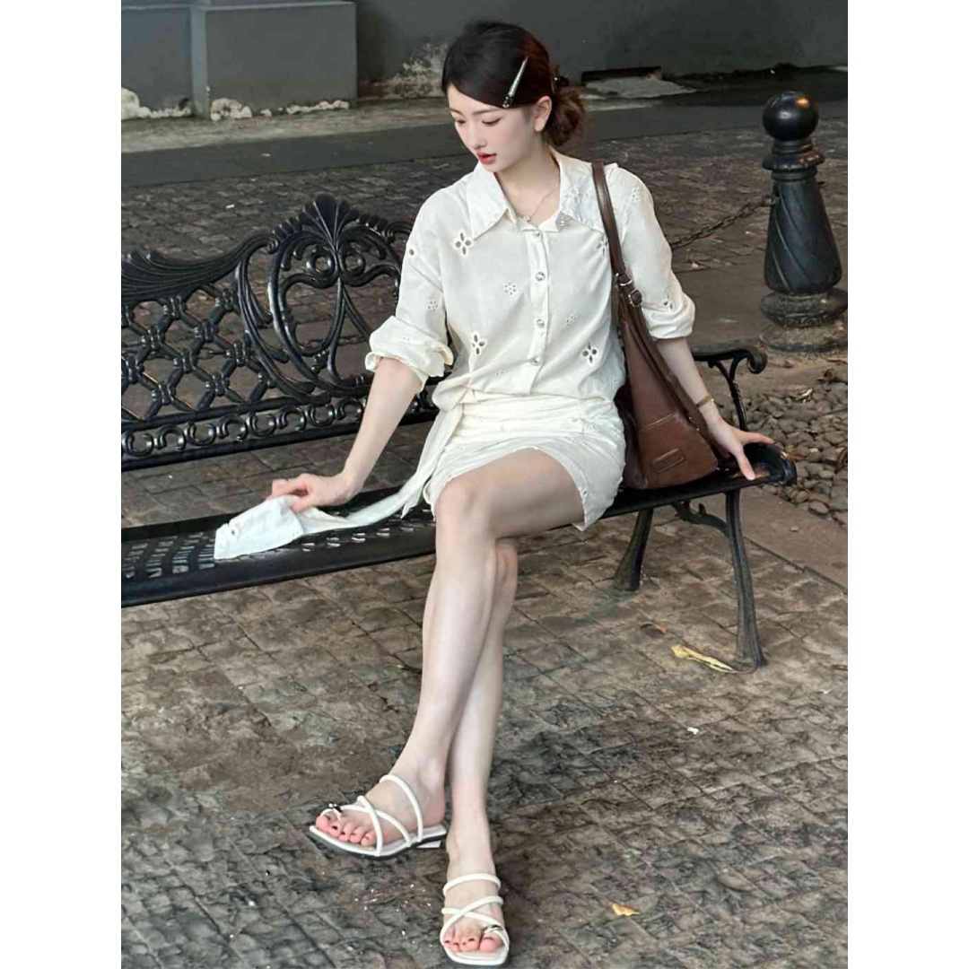 大码胖mm法式复古温柔风白色镂空连衣裙女秋季收腰显瘦气质短裙子