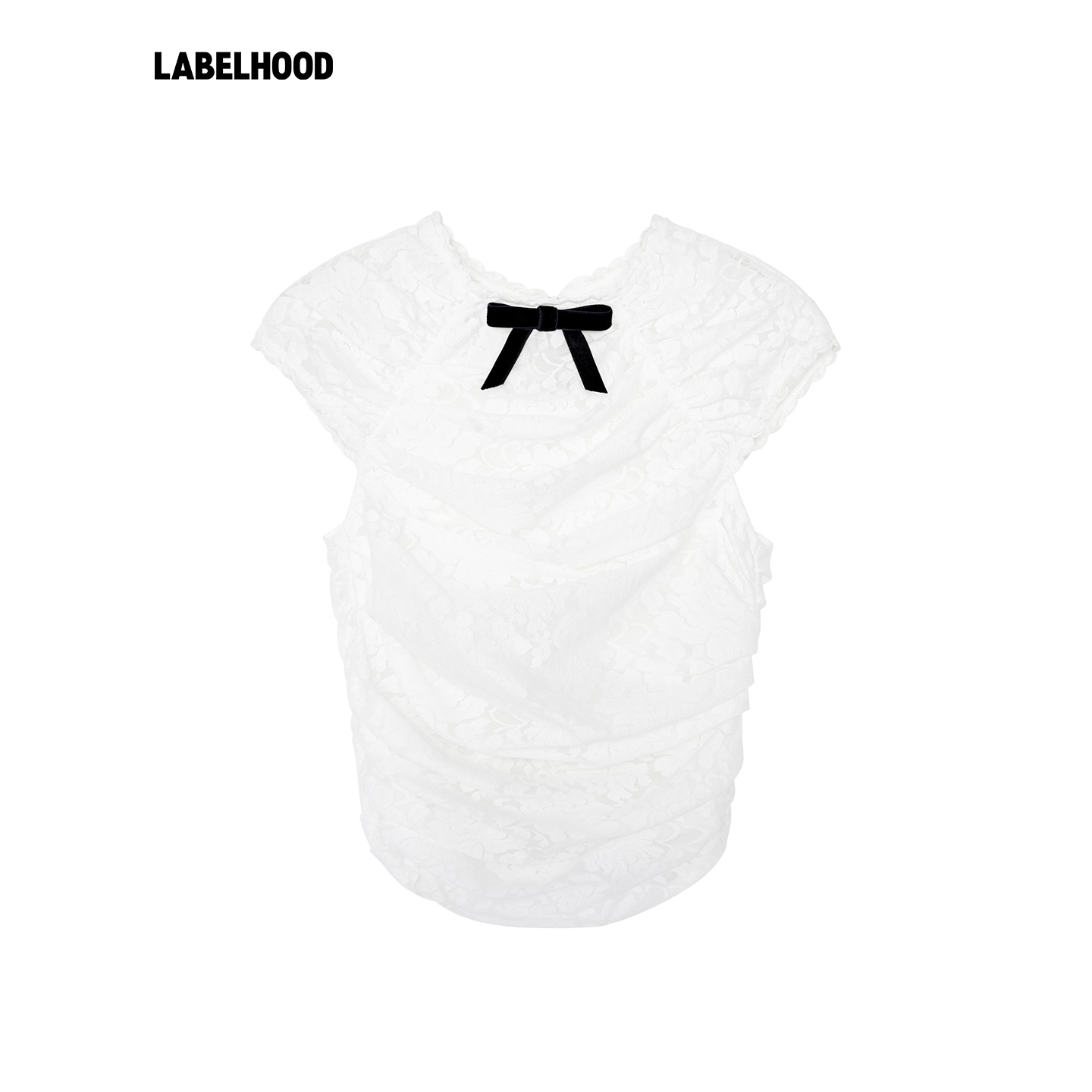 SHUSHUTONG蝴蝶结饰蕾丝抽褶上衣