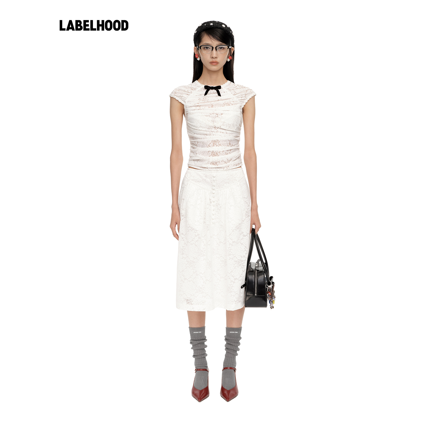【SHUSHUTONG】蕾虎蝴蝶结饰蕾丝抽褶上衣2025秋季新款女装衬衫