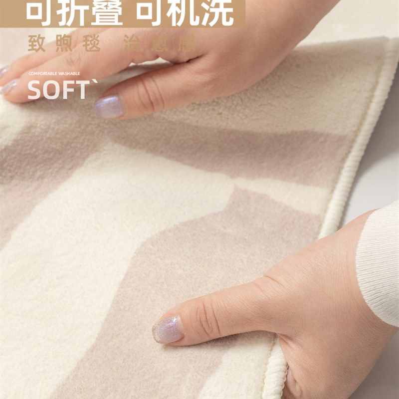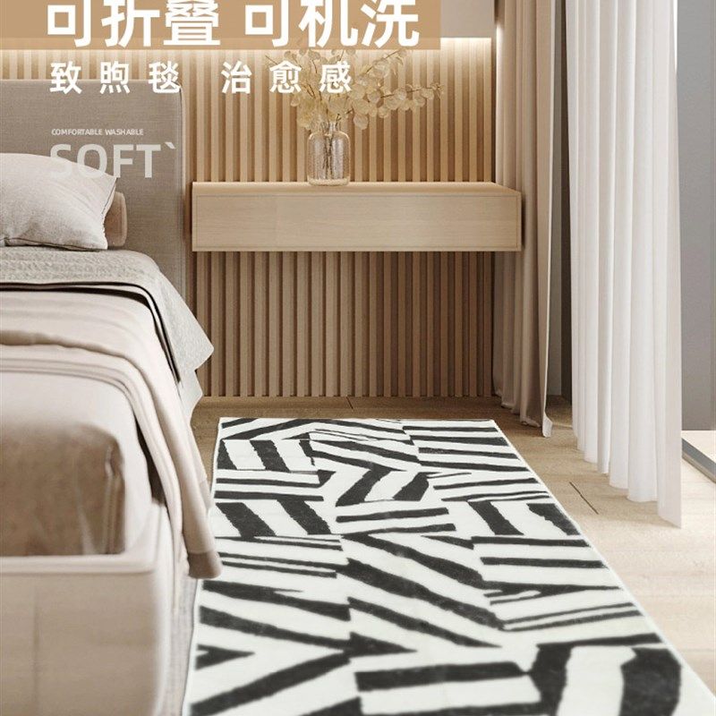 可机洗可折叠侘寂风简约高级日式防滑柔软卧室长R条床边地毯防潮