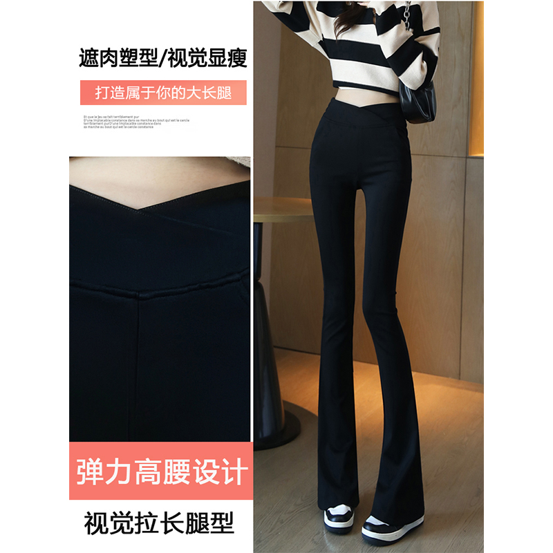 黑色喇叭裤女2025新款春秋高腰打底裤微喇西装裤弹力修身马蹄裤子