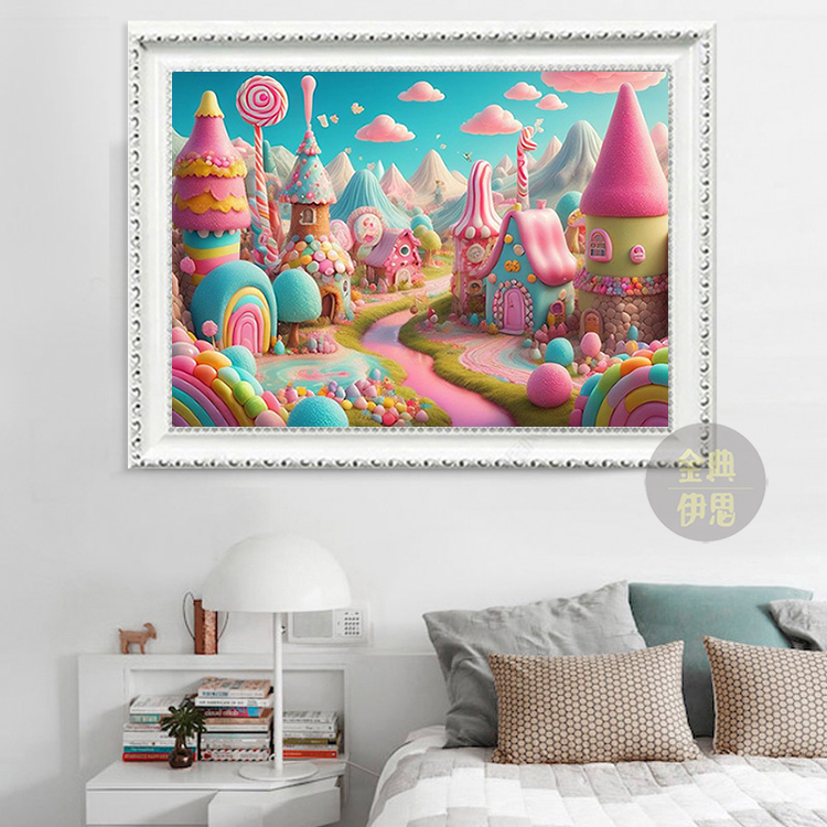 卡通棉花糖城堡风景钻石画2025新款客厅女孩卧室点贴钻十字绣满钻
