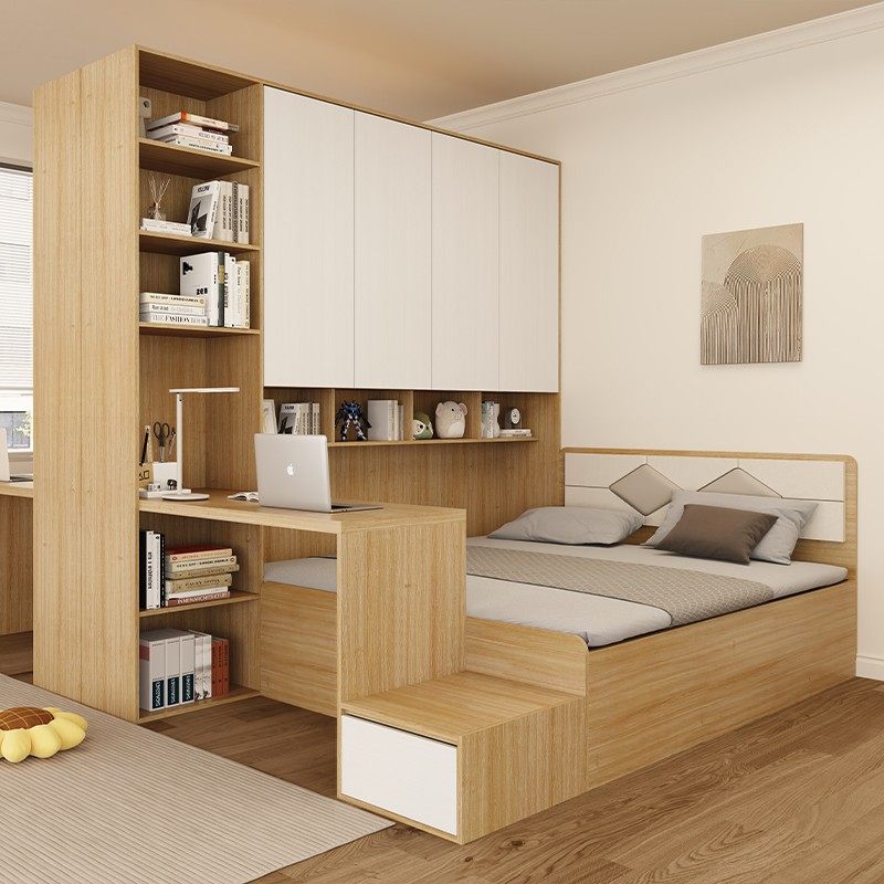 榻榻米双人床一男一女兄弟姐妹分床睡高箱带隔断床改造一房变两房