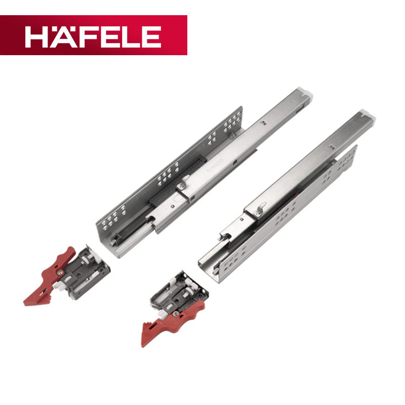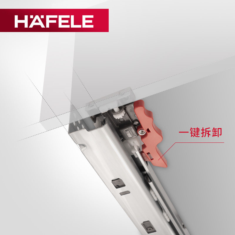 德国海福乐HAFELE家具抽屉隐形免拉手反弹托底滑轨暗藏自弹轨导轨