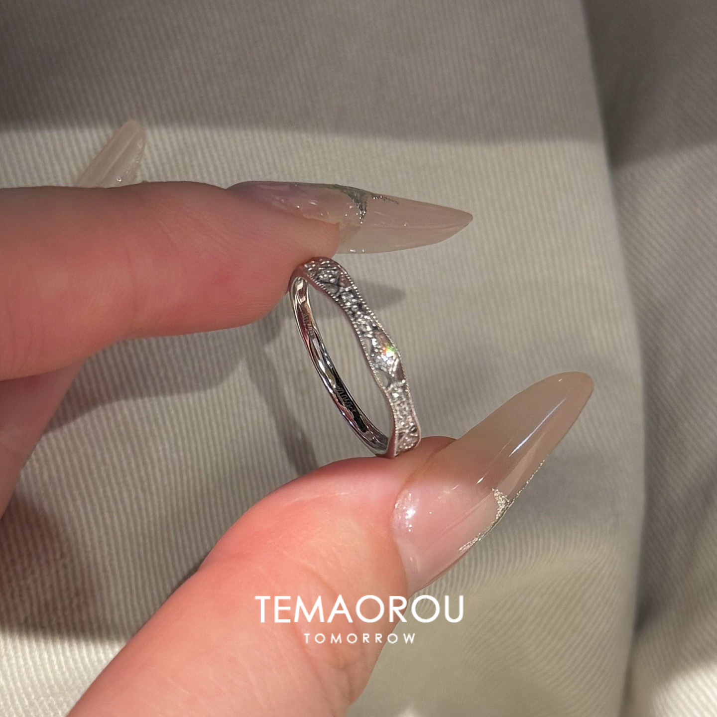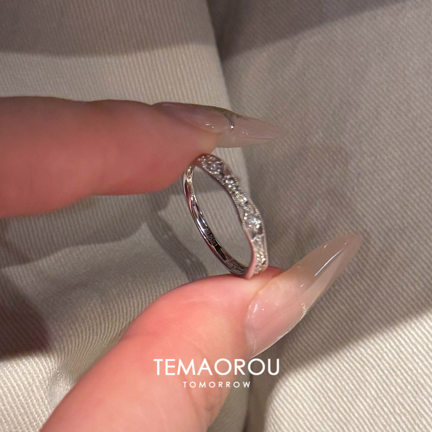 定制开口!s925通体纯银奶奶闪钻戒指女小众独特清冷感食指戒指环