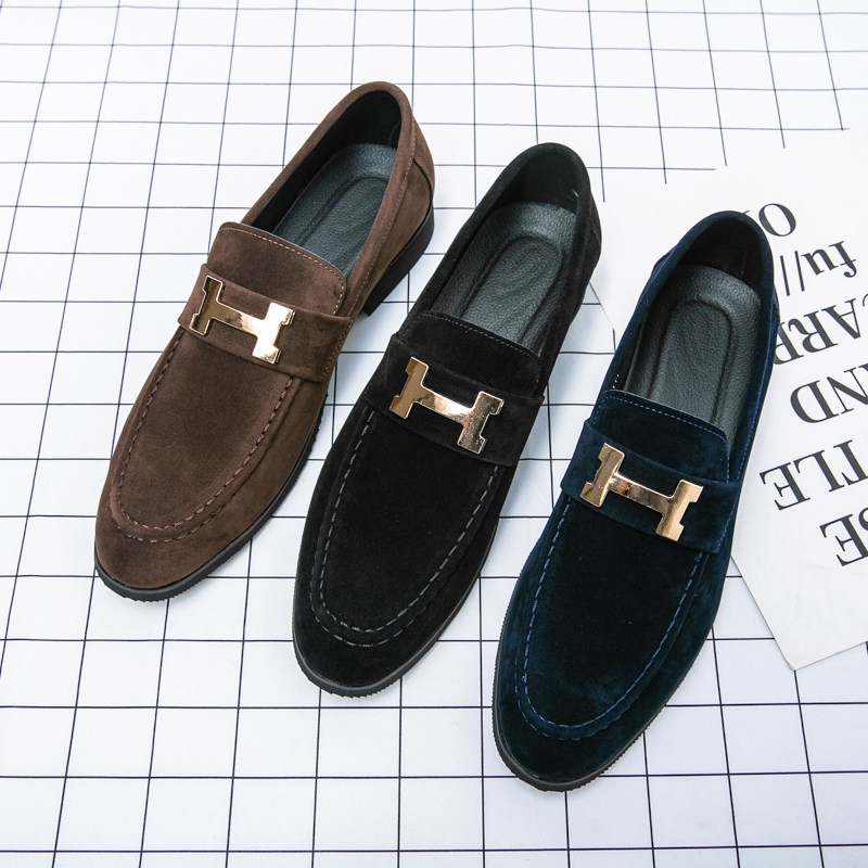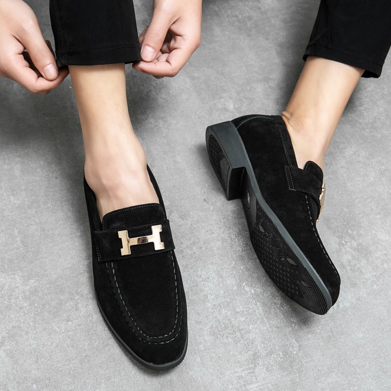 新款男士尖头豆豆鞋英伦潮流磨砂皮韩版懒人一脚蹬商务休闲皮鞋男
