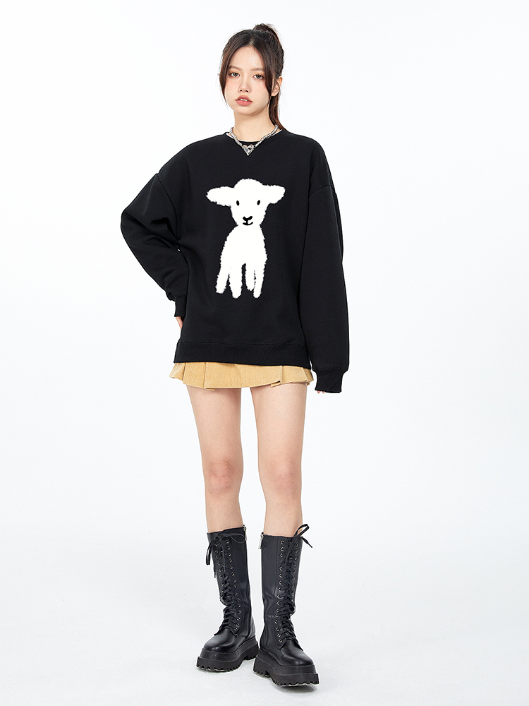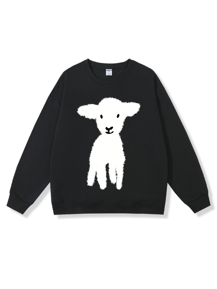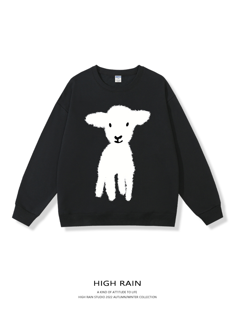 很润工作室 秋季可爱卡通小羊圆领卫衣男女百搭学院风长袖上衣潮
