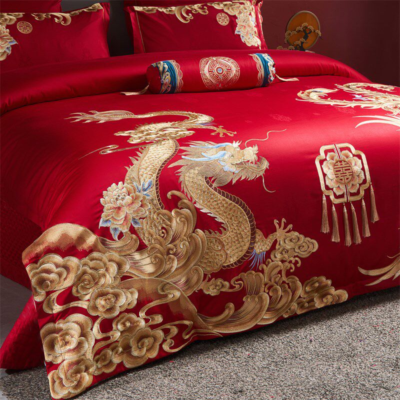 正品结婚四件套婚庆纯棉100全棉床单被套大红T色喜被新婚嫁房