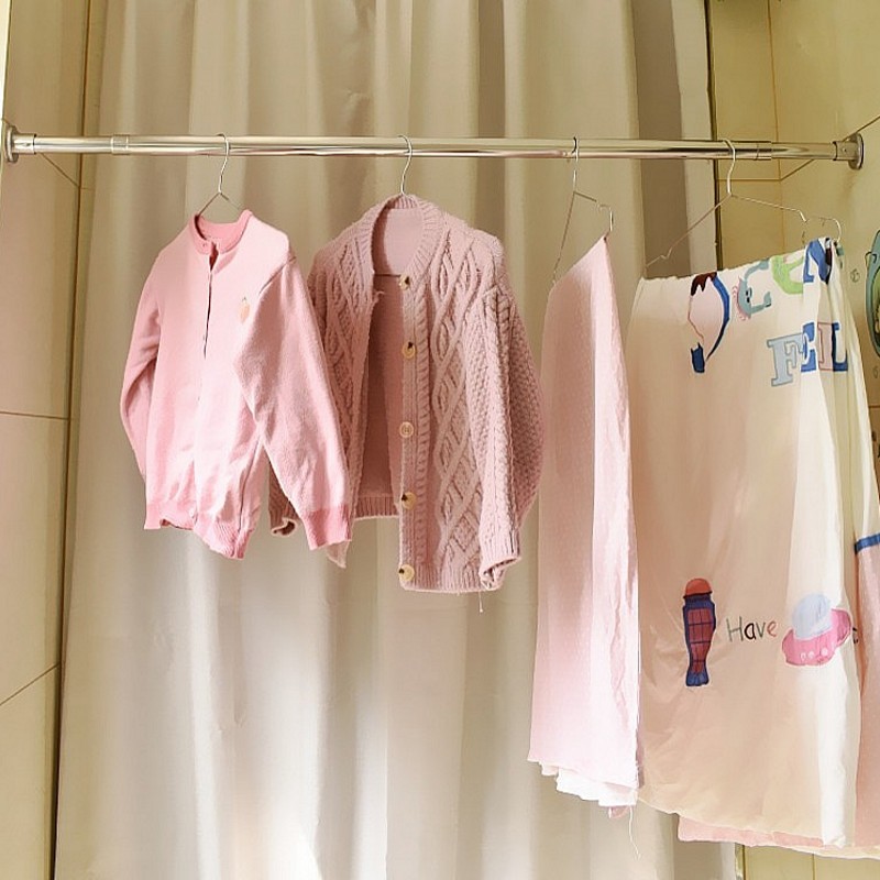 沛晴「5米伸缩晾衣杆带固定座」墙上免钉晾衣架304不锈钢管晒被子
