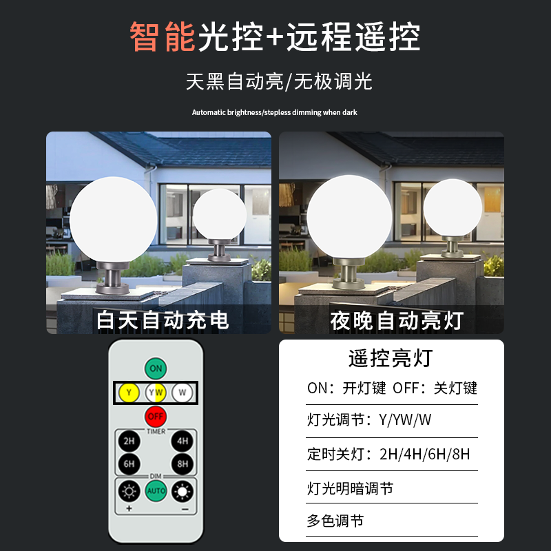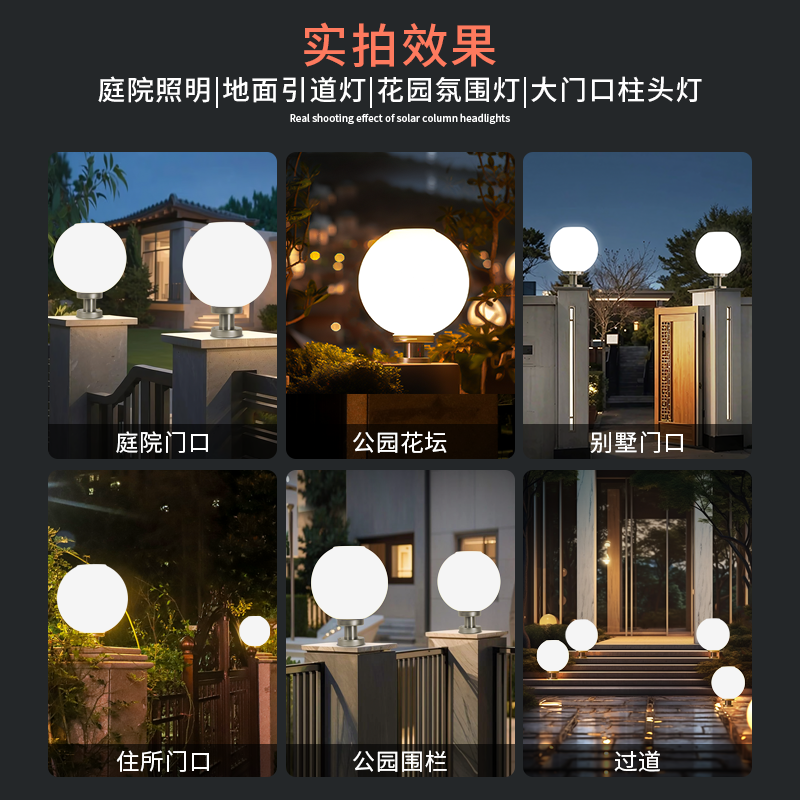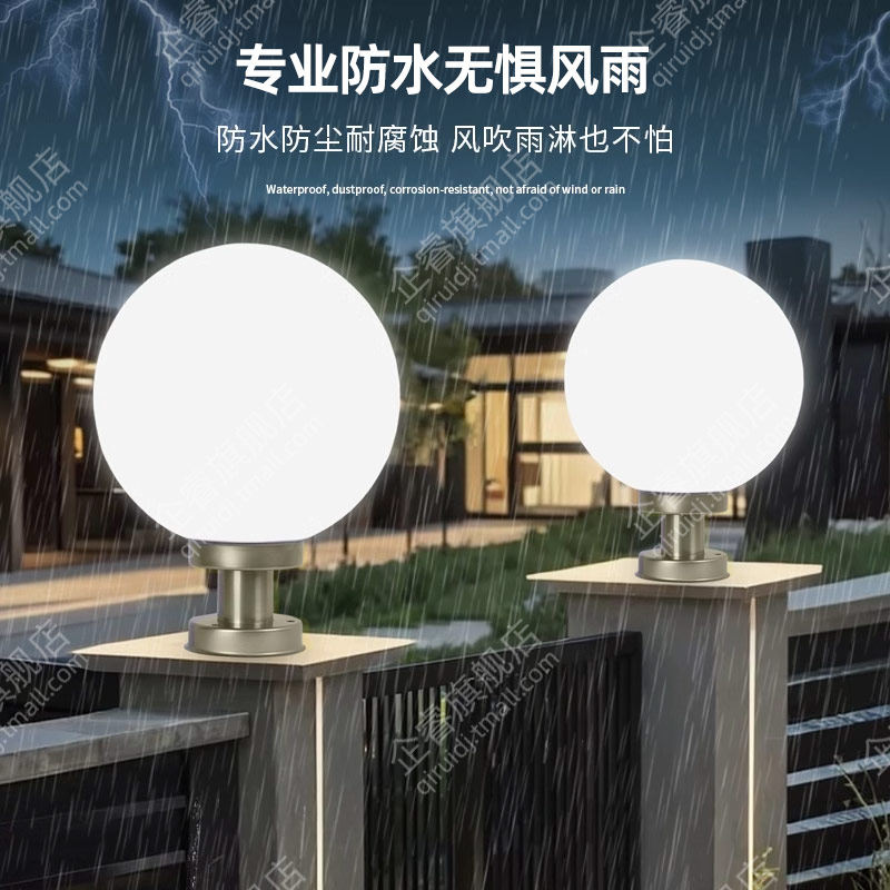 太阳能户外灯家用庭院灯大门柱子新款圆形亚克力球形灯别墅柱头灯