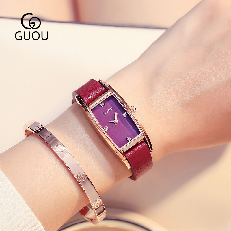 正品香港古欧长方形大气质简约女士皮带防水石英手表时尚女表腕表