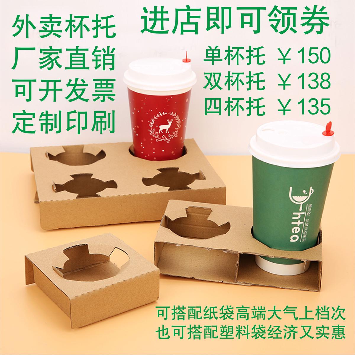 一次性奶茶杯托四杯托双杯架外卖打包袋定制咖啡饮品加高固定底座