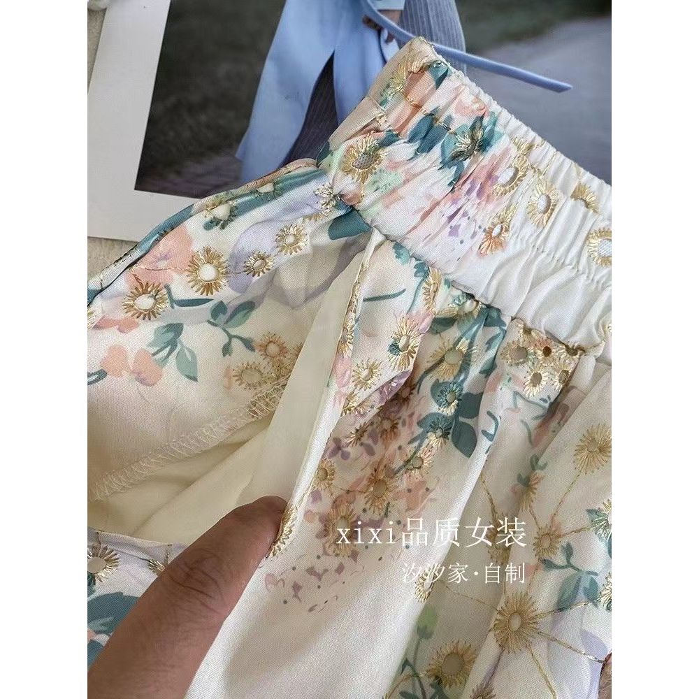新中式套装女2024夏季新款时尚国风法式油画小飞袖上衣短裤两件套