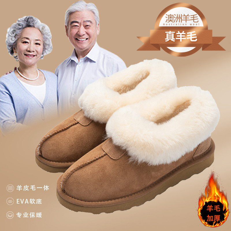 皮毛一体保暖棉鞋男冬季羊毛包跟加绒防滑女室内居家用棉拖鞋老人