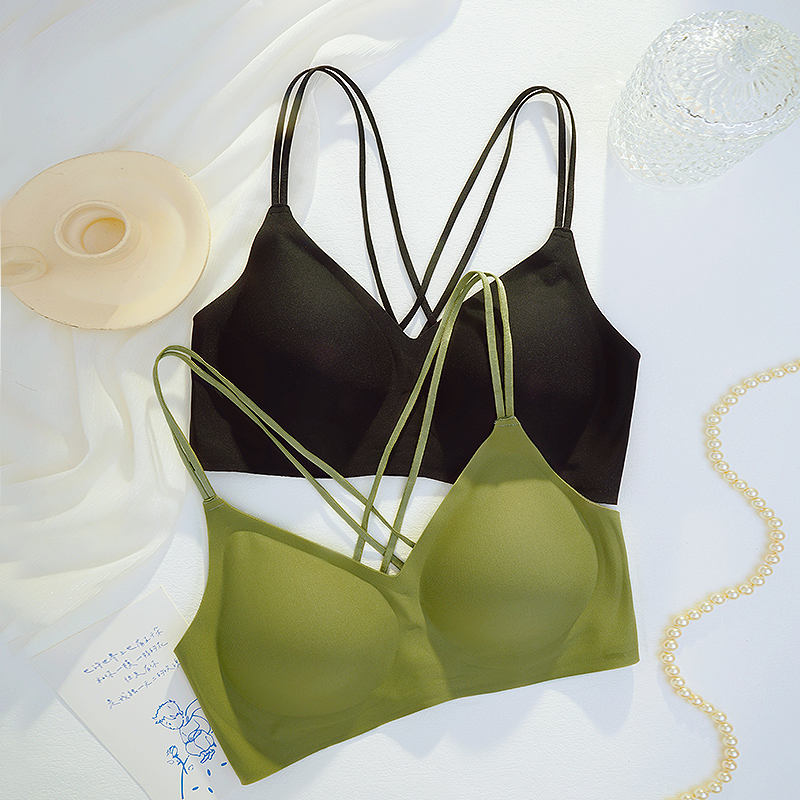交叉美背无痕性感内衣女小胸聚拢无钢圈舒适隐形瑜伽文胸不溜肩