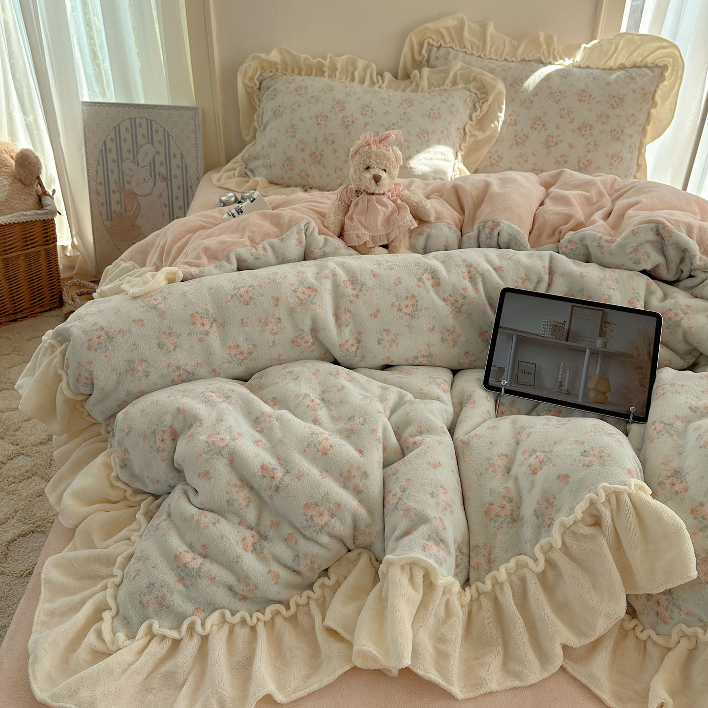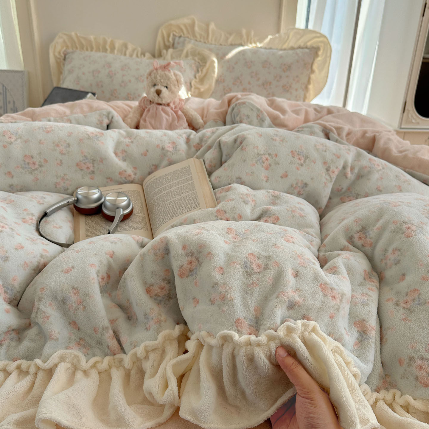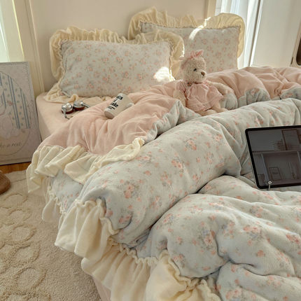 冬季法式奶油风牛奶绒四件套加厚双面绒珊瑚绒床单被套床上三件套